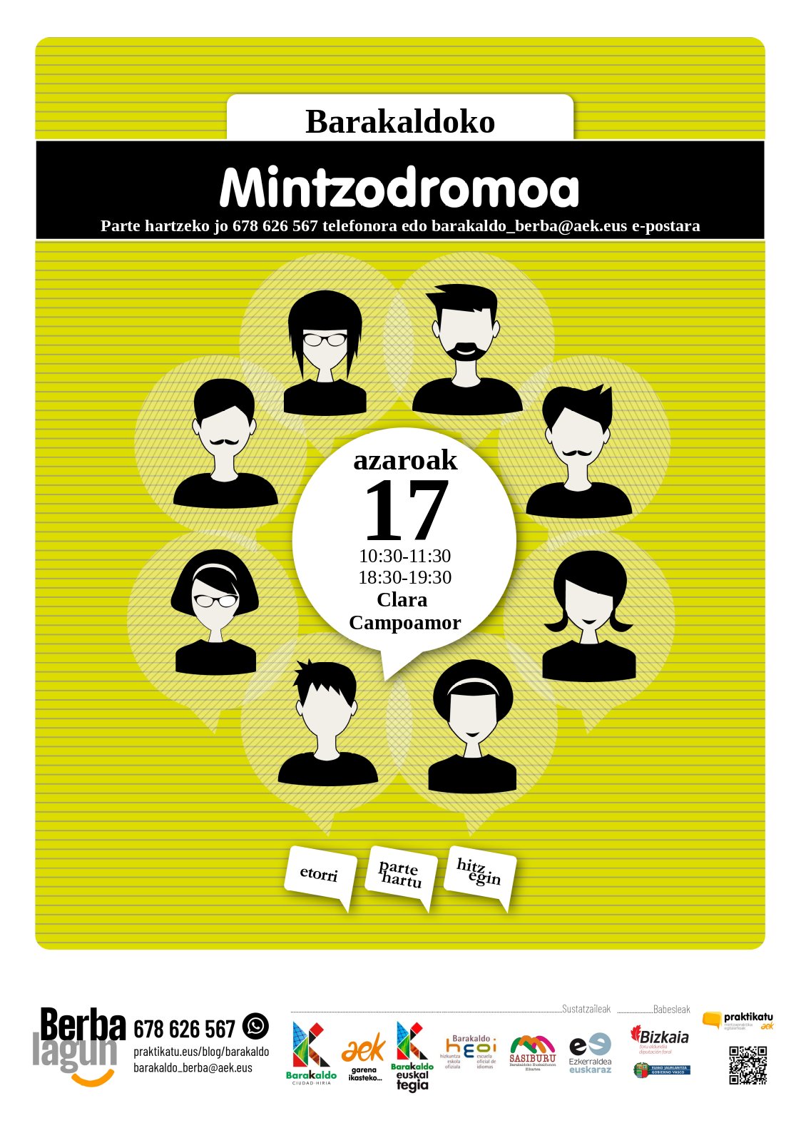 Aurten ere Mintzodromoa antolatuko dugu! Azaroaren 17an, Barakaldoko Clara Campoamor zentroan, 10:30ean eta 18:30ean. Etorri eta gozatu!