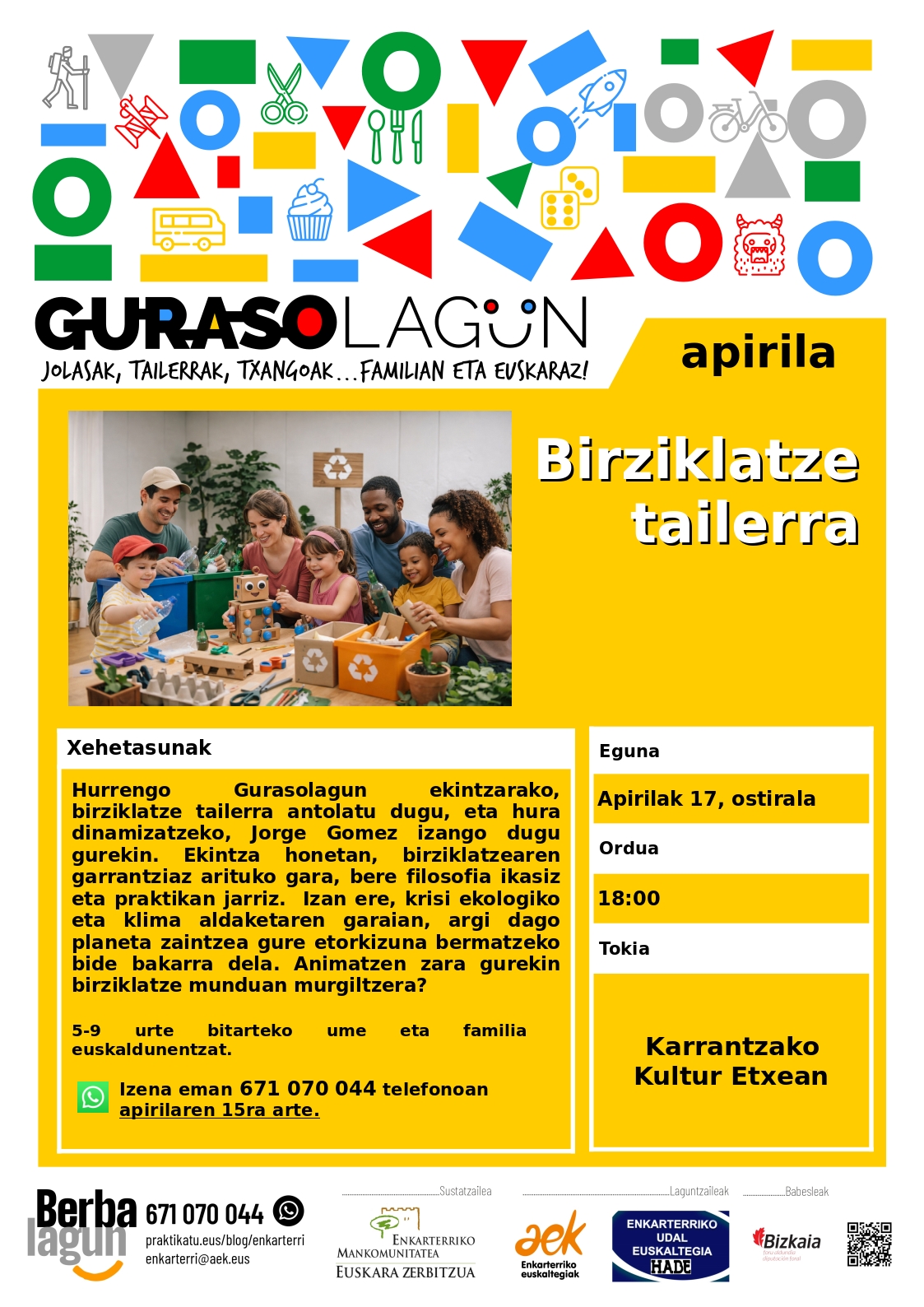 Hurrengo Gurasolagun ekintza “Birziklatze tailerra” izango da. 📅 Apirilak 17 🕗 18:00etan 📍 Karrantzako Kultur Etxean Izena emateko azken eguna: apirilaren 15ean Animatu eta parte…