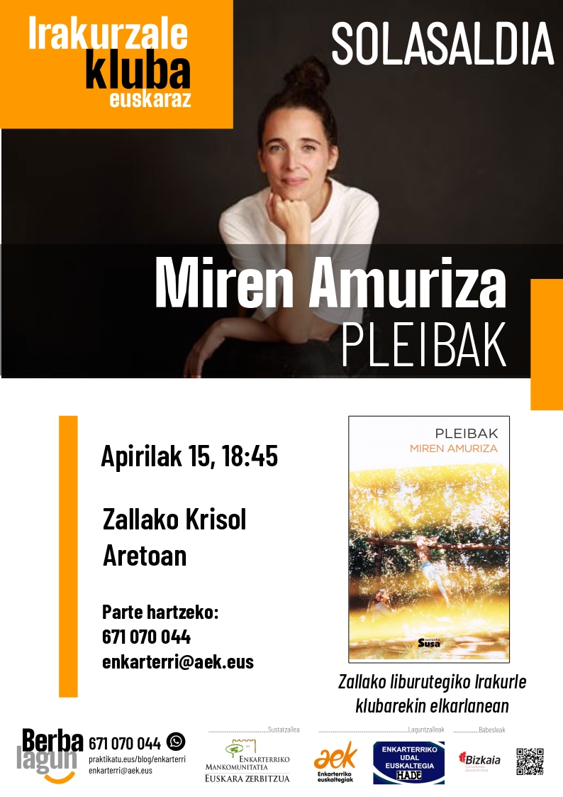 Irakurzale klubaren saio berezia: Miren Amurizarekin solasaldia 📆 Apirilak 15 🕦 18:45 📍 Zallako Krisol Aretoa Etorri, parte hartu, euskaraz egin. Euskara zu zara!