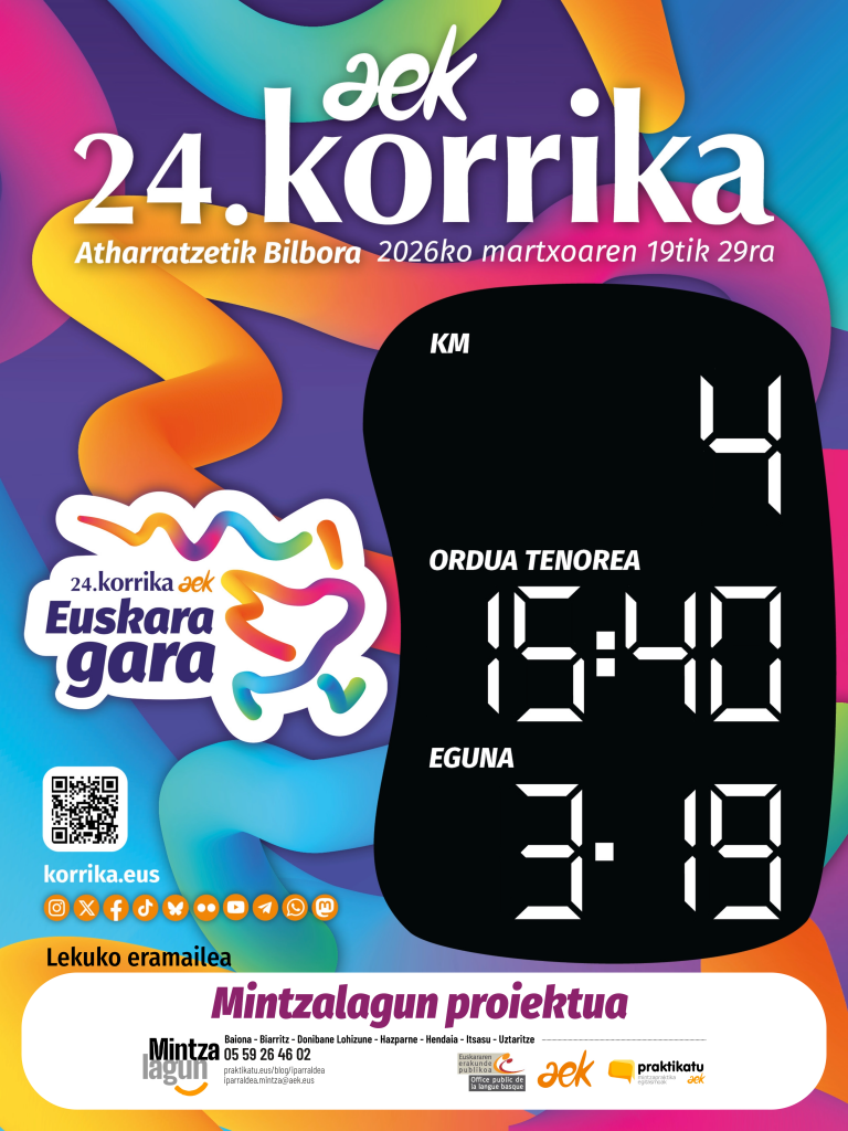 Hala, Korrikaren 4. kilometroa Mintzalagun egitasmoarena izanen da: Iparraldeko Mintzalagun proiektuan ari den kide batek eta AEKko Praktikatu zerbitzuko kide batek hartuko dute Korrikaren eta euskararen lekukoa.