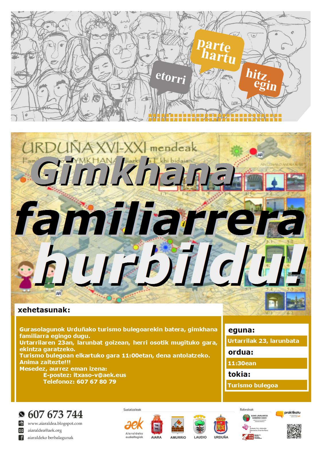 Gurasolagunok gimkhana familiarra egingo dugu, Urduñako turismo bulegoarekin batera. Urtarrilaren 23an, larunbata, goizeko 11:00etan izango da eta turismo bulegoan bertan elkartuko gara.