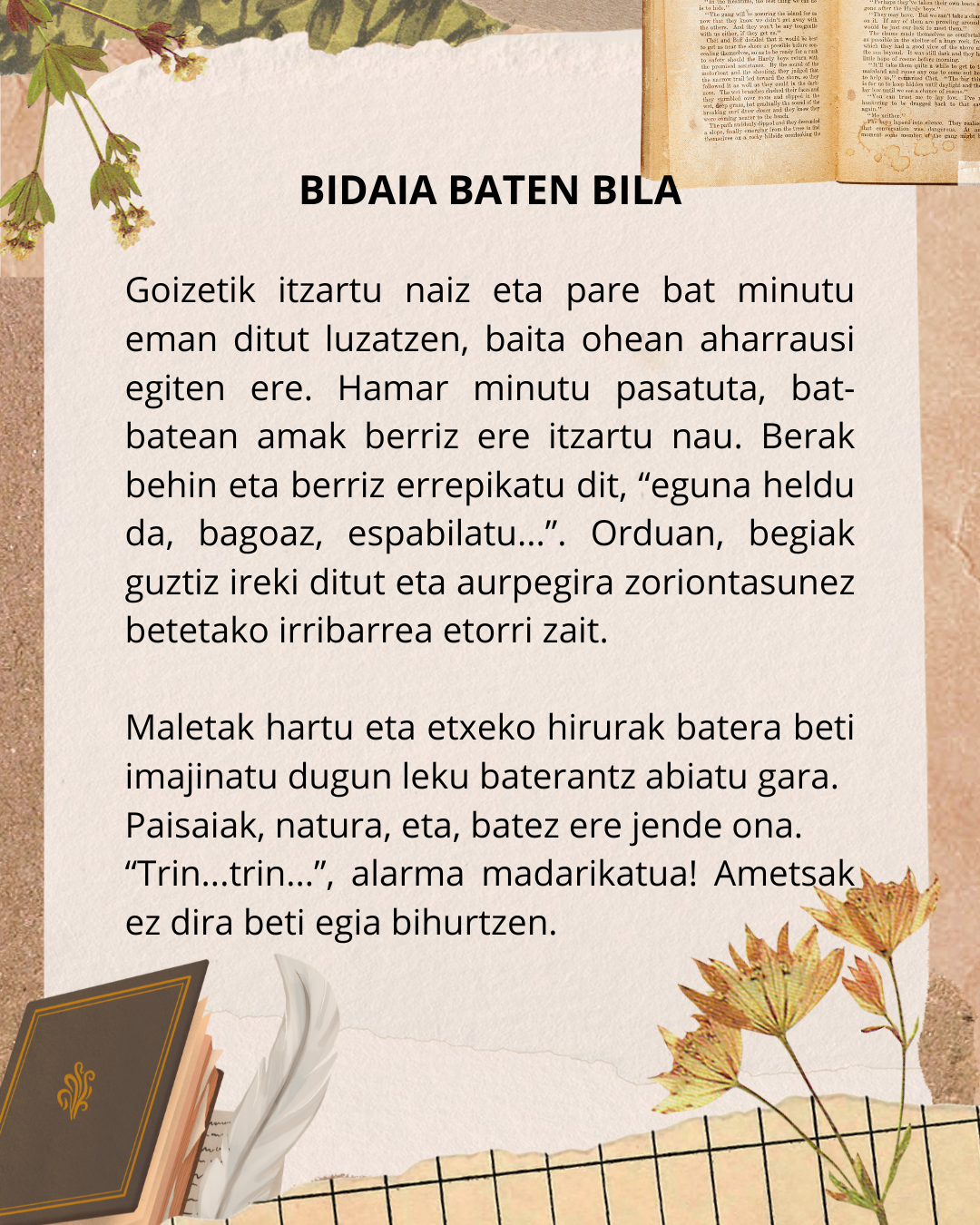 Ane Lekue eta Eleder Gonzalez arratiarrek irabazi dute mikroipuin txapelketa. Lehen postuan, Aneren “43. gela” ipuina hautatu dugu; bigarren postuan, Elederren “Bidaia baten bila”. Zaila…