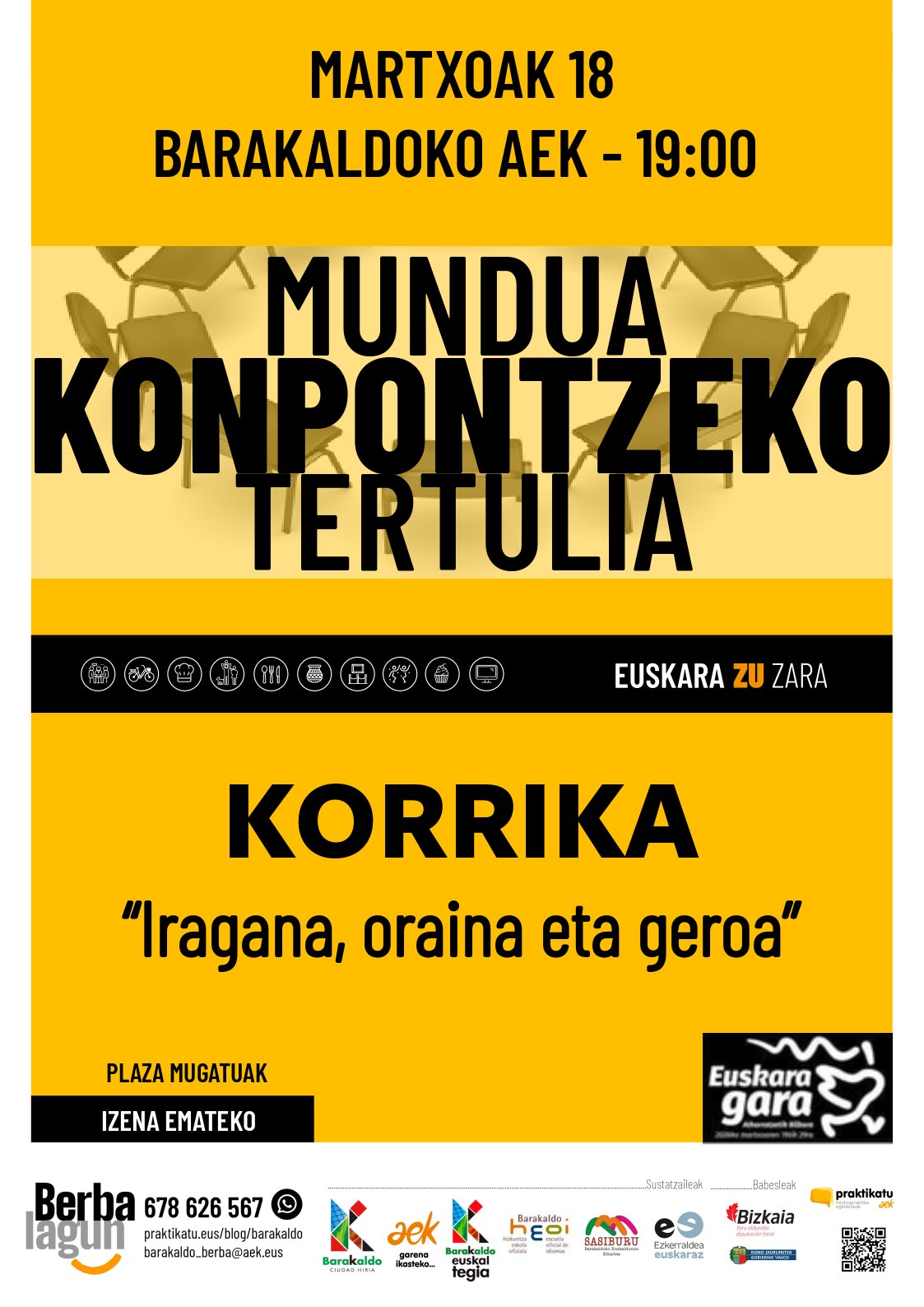 Kaixo! Asteazkenean, Barakaldoko AEKn, 19:00etan, Mundua Konpontzeko Tertuliaren hitzordua dugu. Animatu zaitez eta parte hartu!!
