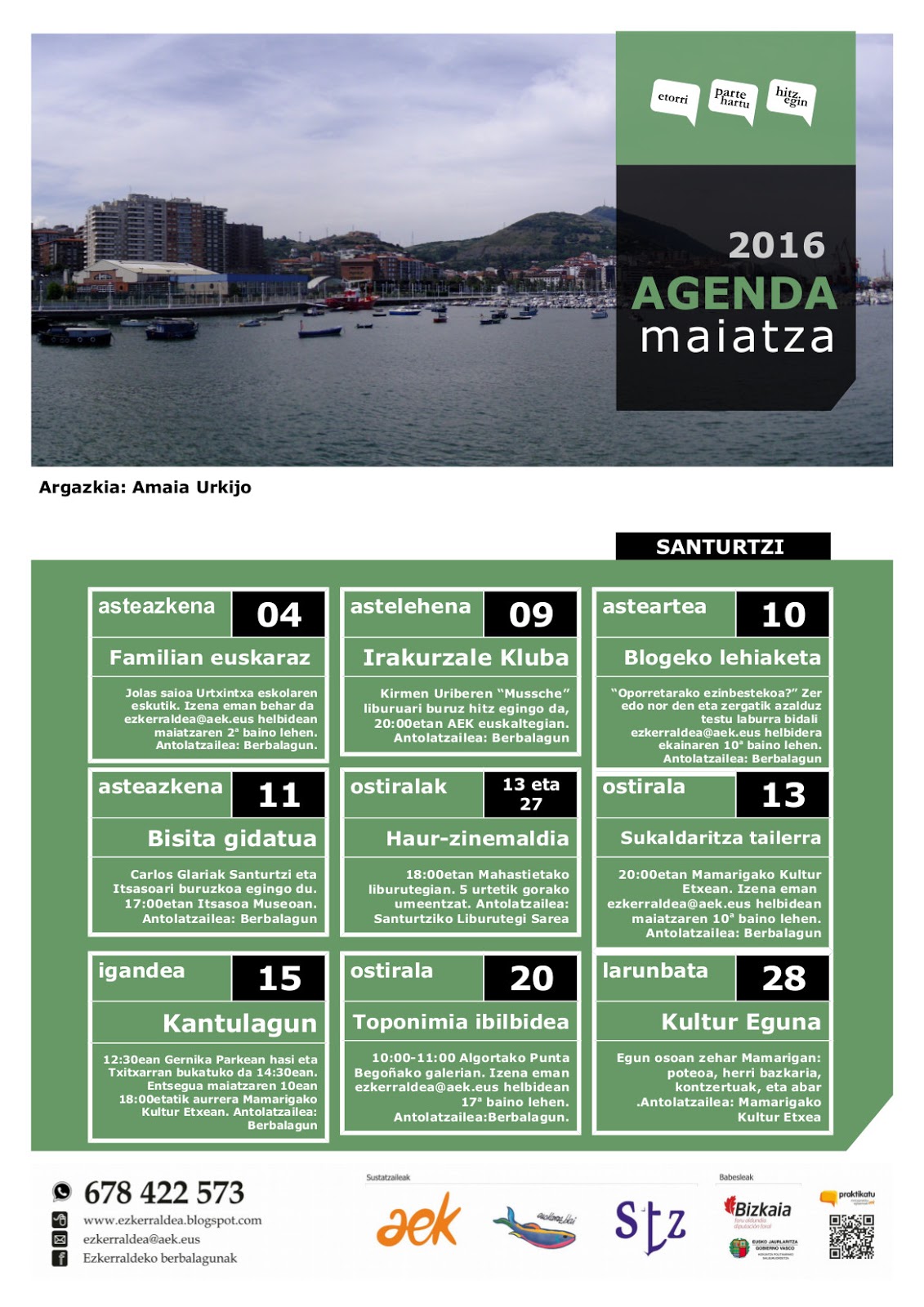 Maiatzeko Santurtziko euskara agenda 2016-04-30 Bidalketetan zehar nabigatu Previous Previous post: JOKUZ JOKUNext Next post: Santurtziko kantulagun taldea