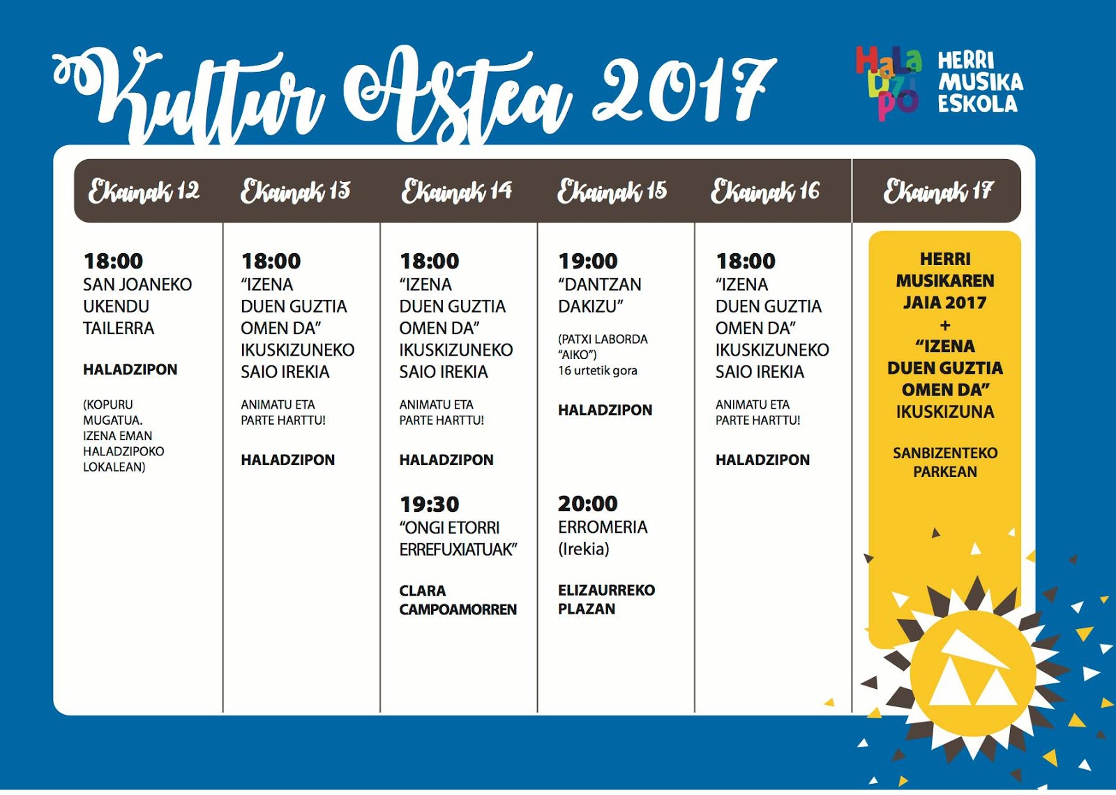 Hala Dzipo musika eskolak hainbat jardueraz jositako astea eskainiko digu: