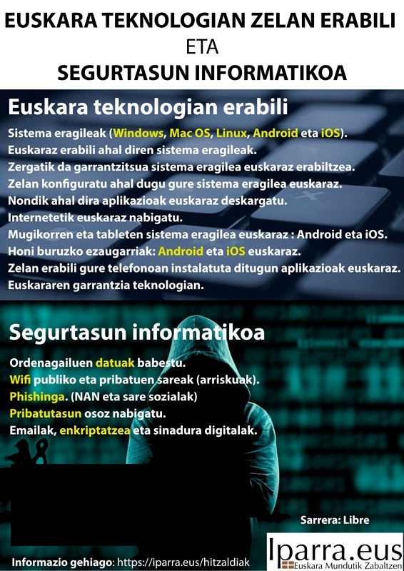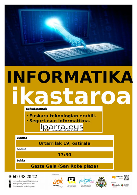 Interneten eta, oro har, teknologia informatikoetan euskara gehiago erabiltzen ikasteko eta sarean segurtasunez aritzeko, INFORMATIKA IKASTARO bat egingo dugu.