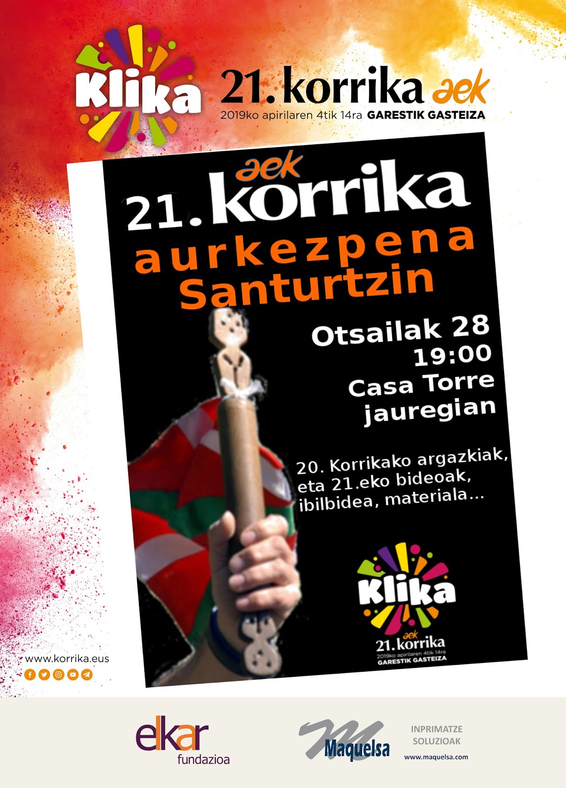 Beraz, badakizue, 21. Korrikaren nondik norakoak ezagutu nahi badituzue, otsailaren 28an hitzordu garrantzitsua izango duzue Casa Torren, 19:00etan. Gainera, otamena (luntxa) egongo da.