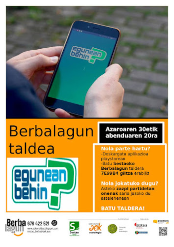 Aplikazioa Playstorean deskargatu ondoren, Sestaoko Berbalagun “egunean behin” taldera gehitzeko, 7E99B4 giltzaerabili beharko da.