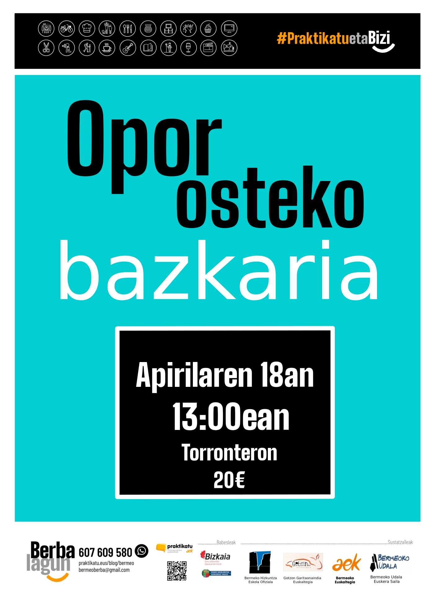 Askotan egin izan dugu opor aurreko bazkaria, oporrak baino lehen agurtzeko, baina oraingo honetan opor ostekoa izango da, oporretako pasadizoak elkarri kontatzeko apirilaren 18an. Torronteron…