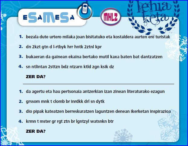 Bigarren lehiaketa abian dago, urtarrilaren 30a baino lehen helarazi behar diguzue urtarrileko honako buletin hau ondo beteta eta ez ahaztu zuen telefono zenbakia, saria har dezazuen…