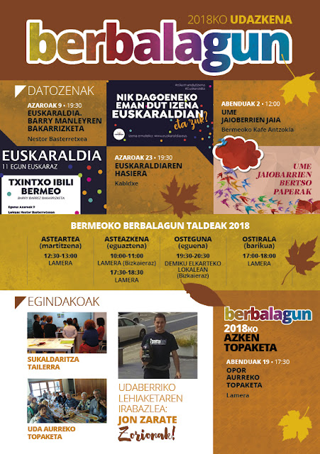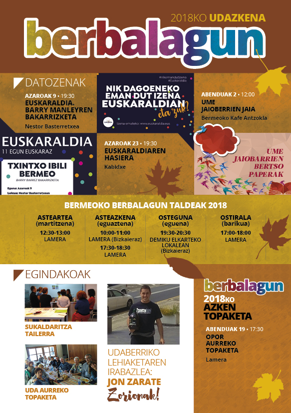 Aurrealdean hiru hilabeteko agenda izango duzue, Gabonetara arte, berbalagun taldeak eta uda baino lehen egindakoaren berri, azken finean, sei hilabetekoaren laburpena orri batean.