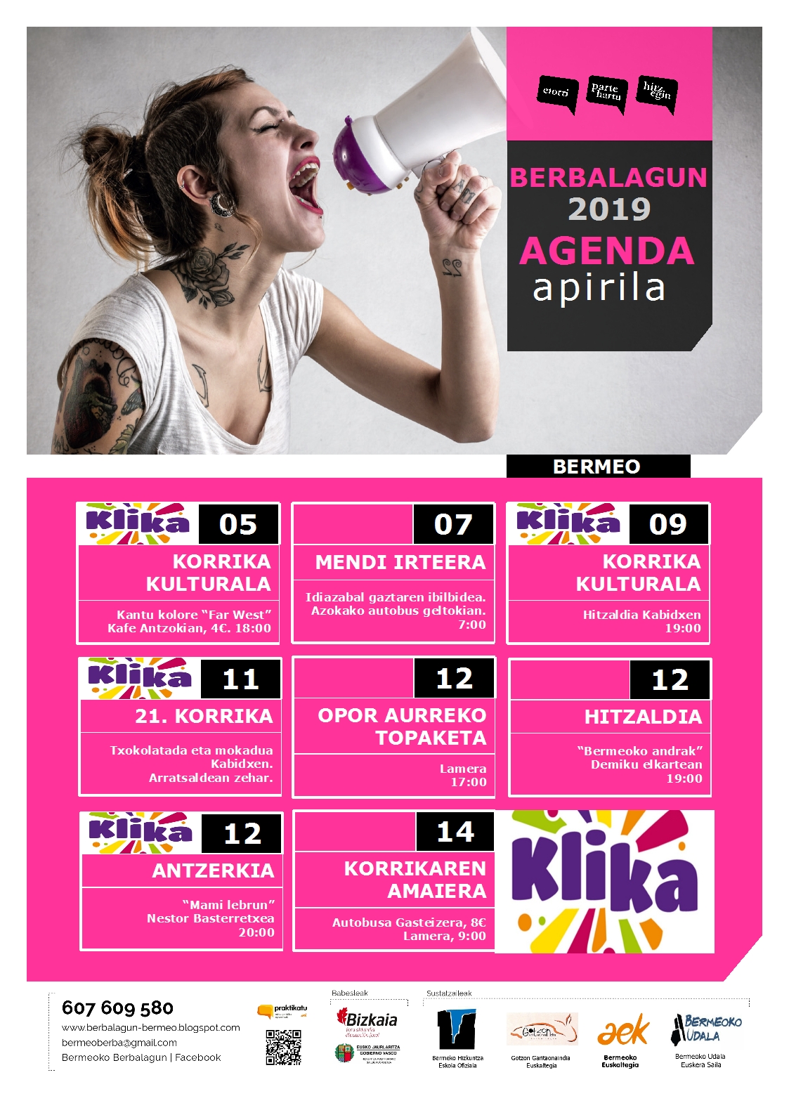 Apirileko agendan Korrikari lotutako ekitaldiak azpimarratu nahi izan ditugu, animatu eta parte hartu, jarraitu zure ohiturak aldatzen eta Klika!