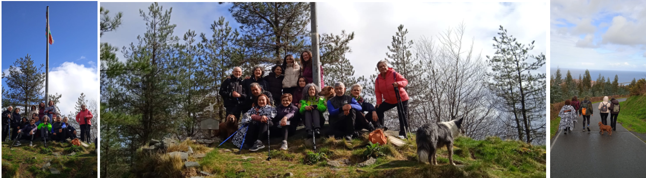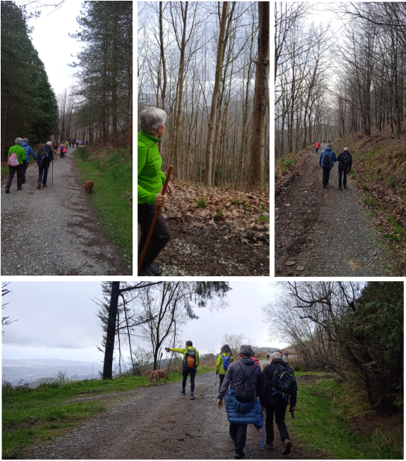 Erdibidean tartetxo bat hartu genuen zerbait jateko, taldeko argazkia aterea genuen, eta jarraitu genuen bidea gorantz. Batzuetan euria, beste batzuetan eguzkia, aldapatik gora egin genuen, eta bueltatu ginen hasierako puntura. Handik Bermeora batzuk berriro autobusez, beste batzuok Almiketik bueltan, nekatuta baina oso goiz ona pasatuta, lagunartean, euskaraz eta herrian.