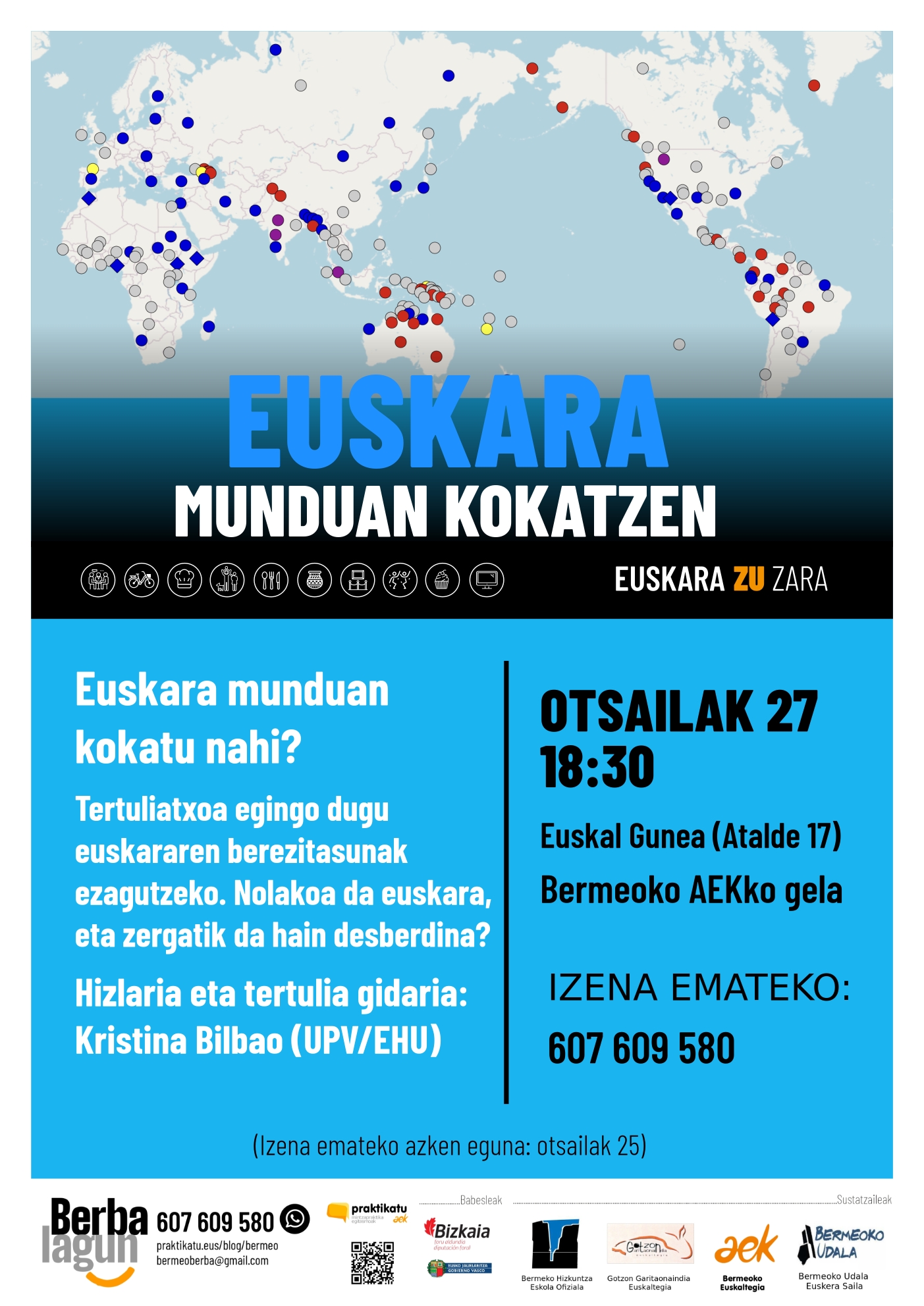 Hilaren 27an hitzaldi tertuliatxoa izango dugu Euskal Gunean, 18:30etik aurrera, gure hizkuntza munduan kokatzeko. Euskara gara, baina nolakoa da euskara? Badaude antzeko hizkuntzak? Zertan gara…