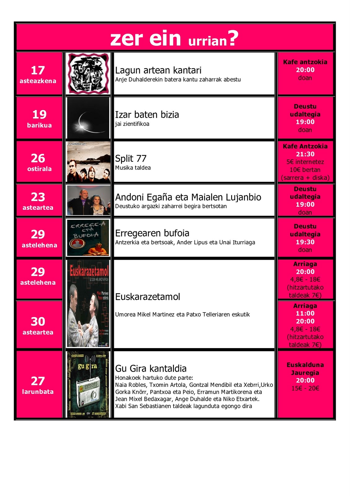 Zer moduz doa dena lagunok? neguko arropak atera ditugu armairutik? azaroko egun euritsuei errazago aurre egiteko zer ein buletina bidaltzen dizuegu, agenda goraino izan dezazuen!