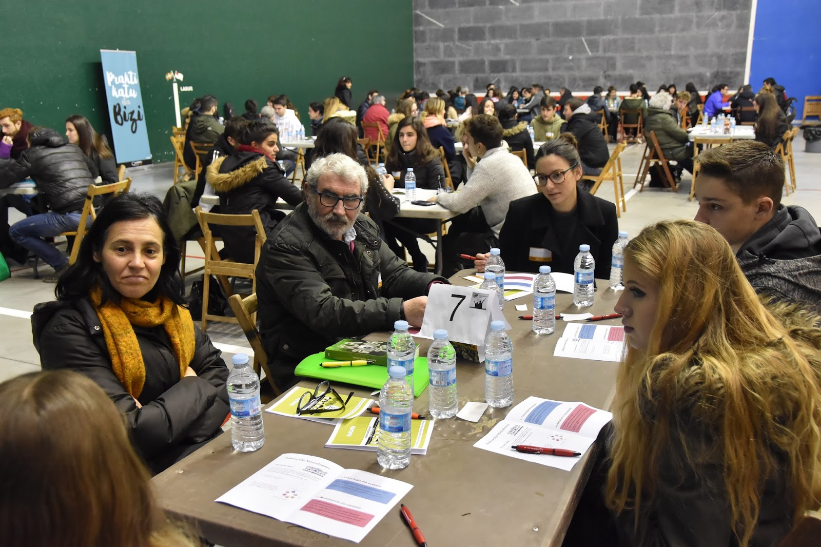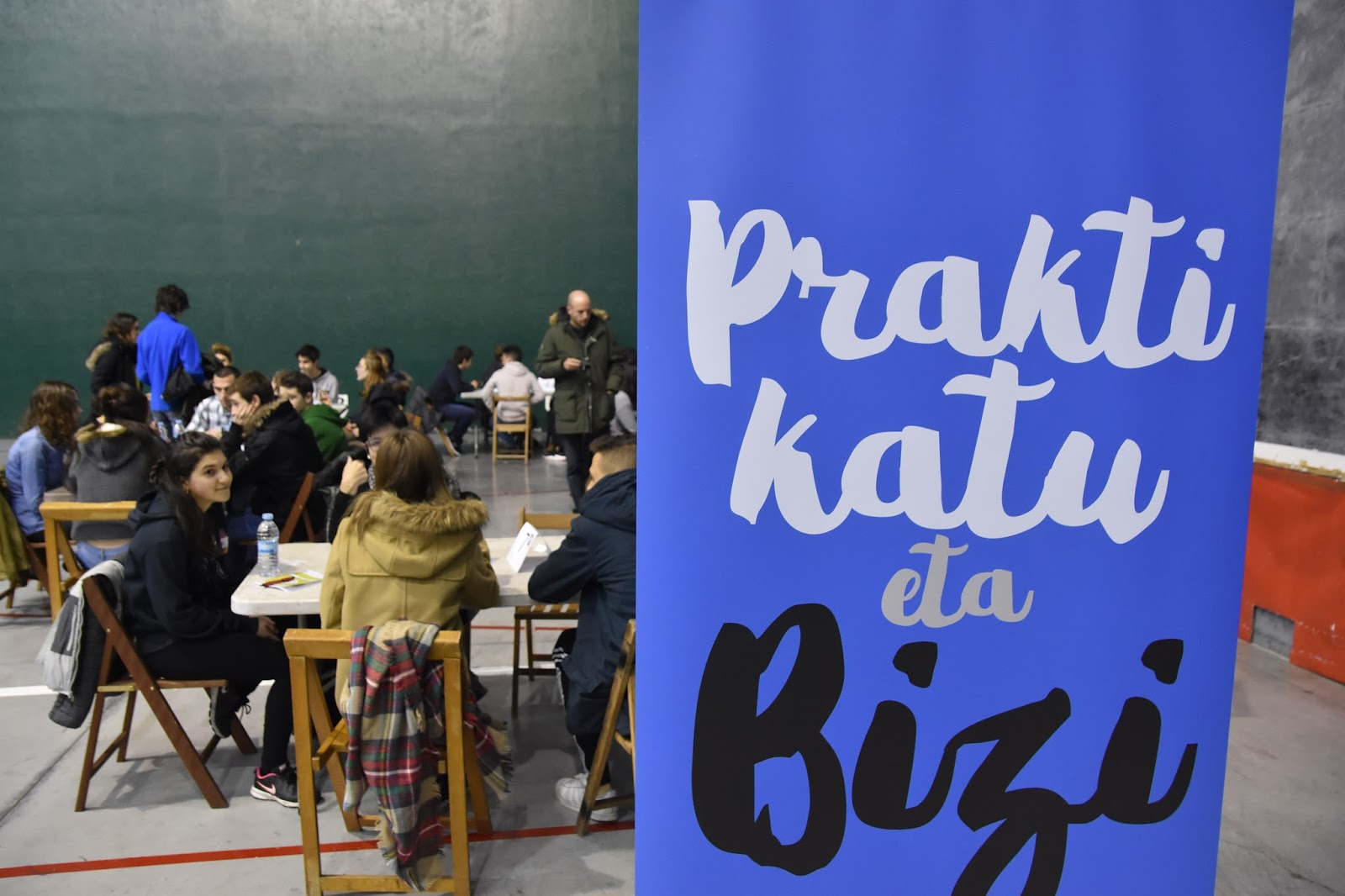 Atzo, Mahatserriko Mintzodromoa ospatu genuen Santutxu-Txurdinagako Euskararen Astearen barruan. Karmelo kalean egiteko asmoa genuen baina eguraldiaren beldur, B plana martxan jarri eta Kirikiño ikastolako kiroldegira eraman genuen. Hasieran hotz hasi bazen ere, ezin hobeto amaitu genuen goiza. 200 lagunetik gora (azken uneko baja batzuk izan arren) ibili ziren berbetan 20 minutuko lau txandetan. Institutuko irakasleak zein ikasleak, euskaltegiko ikasle nahiz irakasleak eta Bilbo osotik etorritako berbalagunak poz-pozik irten ziren. Hurrengoa ea noiz egingo dugun galdezka joan ziren. Antolaketa lan handia ekarri digu Mintzodromoak, baina emaitzak ikusita errepikatu egingo duguna ziur izan.