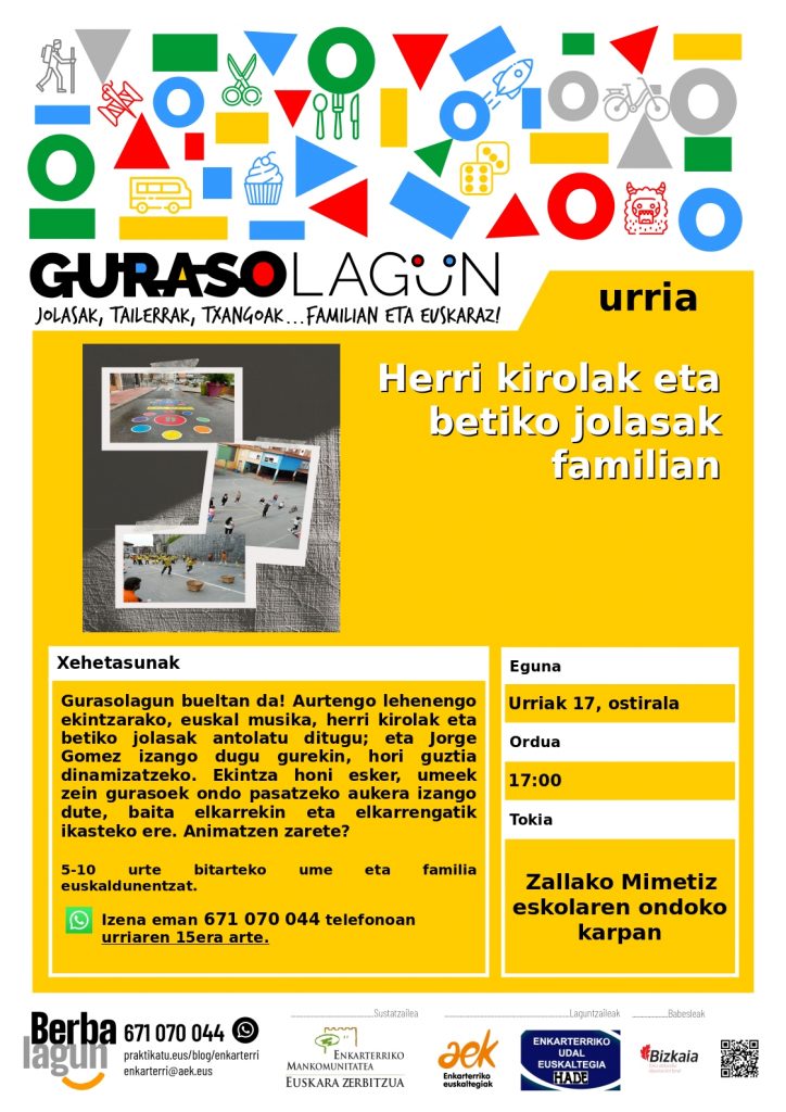 🗣️ Hurrengo Gurasolagun ekintza “herri kirolak eta betiko jolasak” izango da.