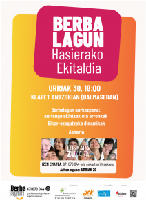Dagoeneko ikasturte berria martxan da, eta hasiera ederra izateko Enkarterriko Berbalagunok “Hasierako Ekitaldia” antolatu dugu urriaren 30ean, arratsaldean. Balmasedako Klaret Antzokian elkartuko gara, 18:00etan.