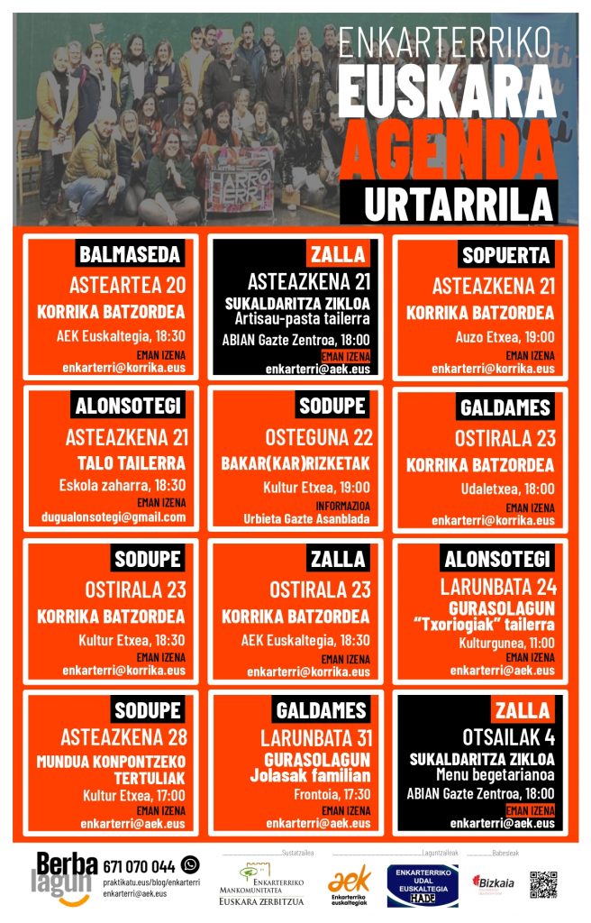 Urtarrileko euskararen agenda hemen da 2026-01-15 Urtarrileko euskararen agenda hemen da Bidalketetan zehar nabigatu Previous Previous post: BERBALAGUNAK zain dituzu!