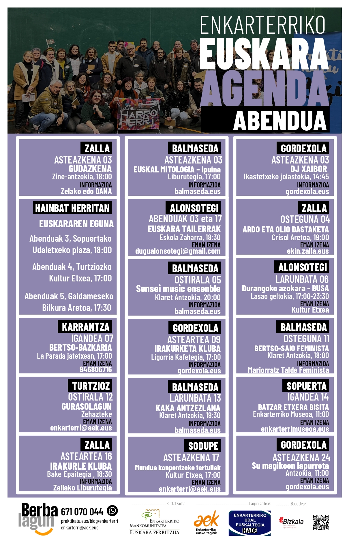 Hona hemen dituzue abenduan gure eskualdean euskaraz egingo diren ekintzak. Animatu eta parte hartu! Euskara zu zara!