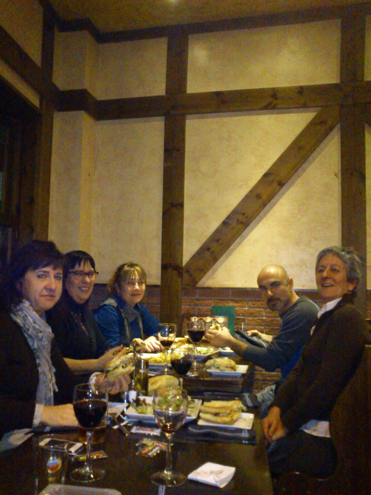 Euskararen eguna zela eta poteoan gustura ibili ostean, afaltzera joan ziren asteleheneko berbataldekook! Ederto pasatu genuen eta hurrengo egunean lanera joan behar bagenuen ere, eguna bukatuta itzuli ginen etxera.