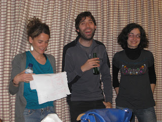 Epaiaren berri ematen eskuineko argazkian ateratzen diren hiru artista hauek. Epaile lanetan, berriz,parte hartutako guztiok izan genuen ardura berbera.