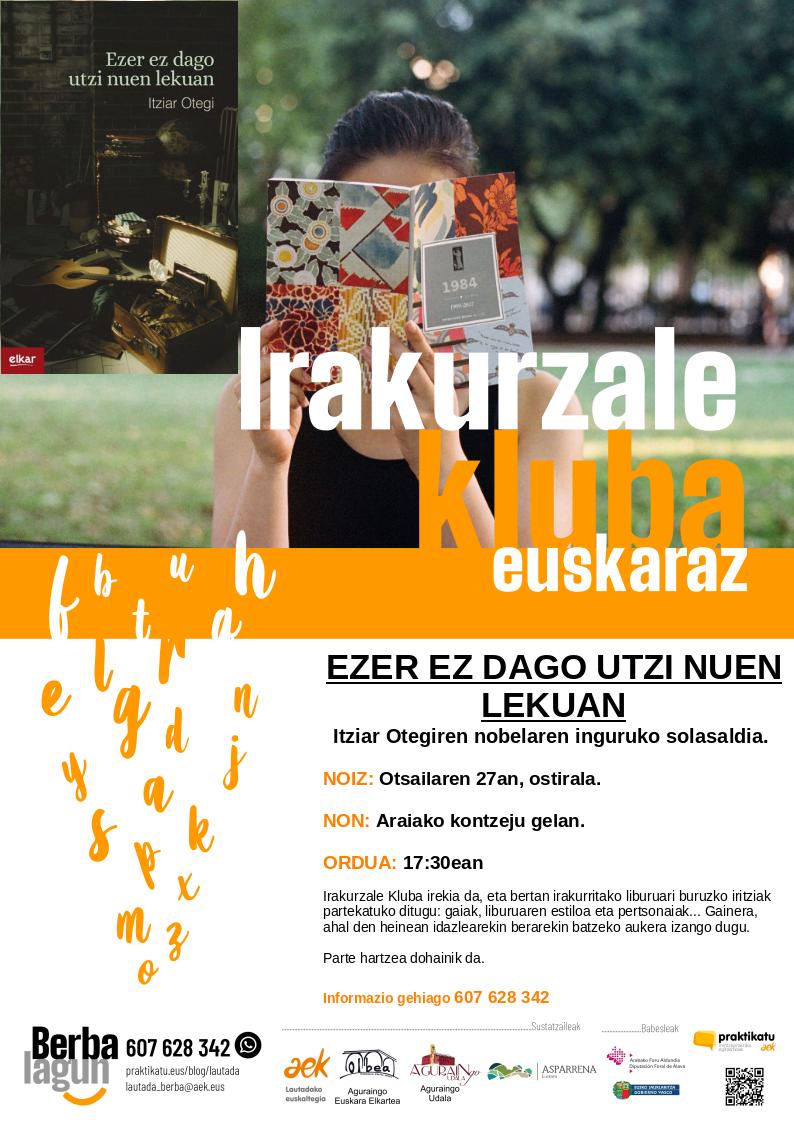 Otsailaren 27an Itziar Otegiren “Ezer ez dago utzi nuen lekuan” nobelari buruzko solasaldia egingo dugu. Irakurri eta etorri parte hartzera!
