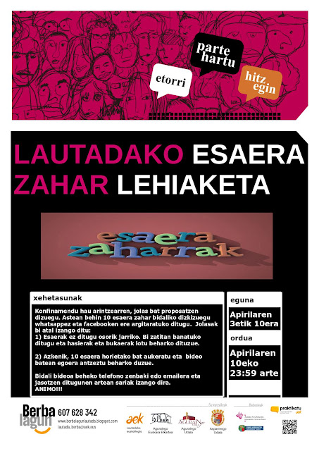 Konfinamendu hau arintzearren, jolas bat proposatzen dizuegu. Astean behin 10 esaera zahar bidaliko dizkizuegu whatsappez eta facebooken ere argitaratuko ditugu. Jolasak bi atal izango ditu: