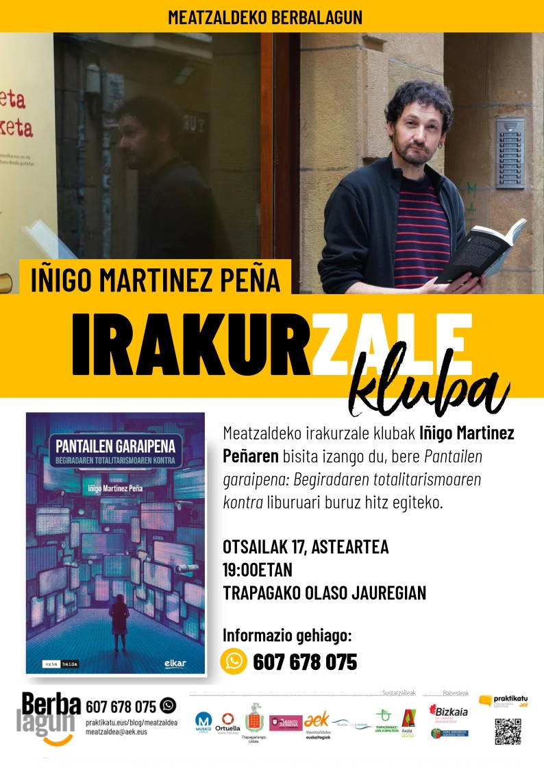 Iñigo Martinez Peña izango dugu hilak 17 arratsaldeko 19:00etan Trapagako Olaso jauregian bere “Pantailen garaipena” liburua komentatzeko gurekin. Animatu eta irakurri gurekin!