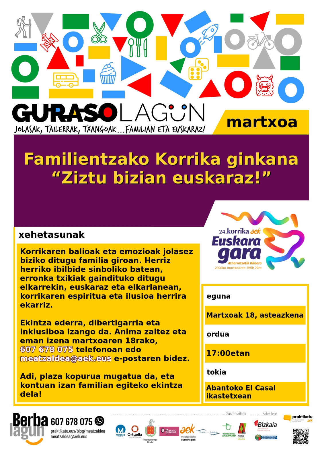 Kaixo talde! Martxoaren 18an Ziztu bizian euskaraz! izeneko ginkana egingo dugu Abantoko El Casal ikastetxean. Irakurri kartela eta izena eman antolatutako ekintzan! Zuen zain geratzen…