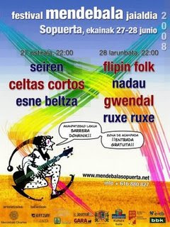 Asteburu honetan, ekainak 27 eta 28, Sopuertako Enparantzan Folk Jaialdia aurten ere ospatuko da: Mendebala 2008