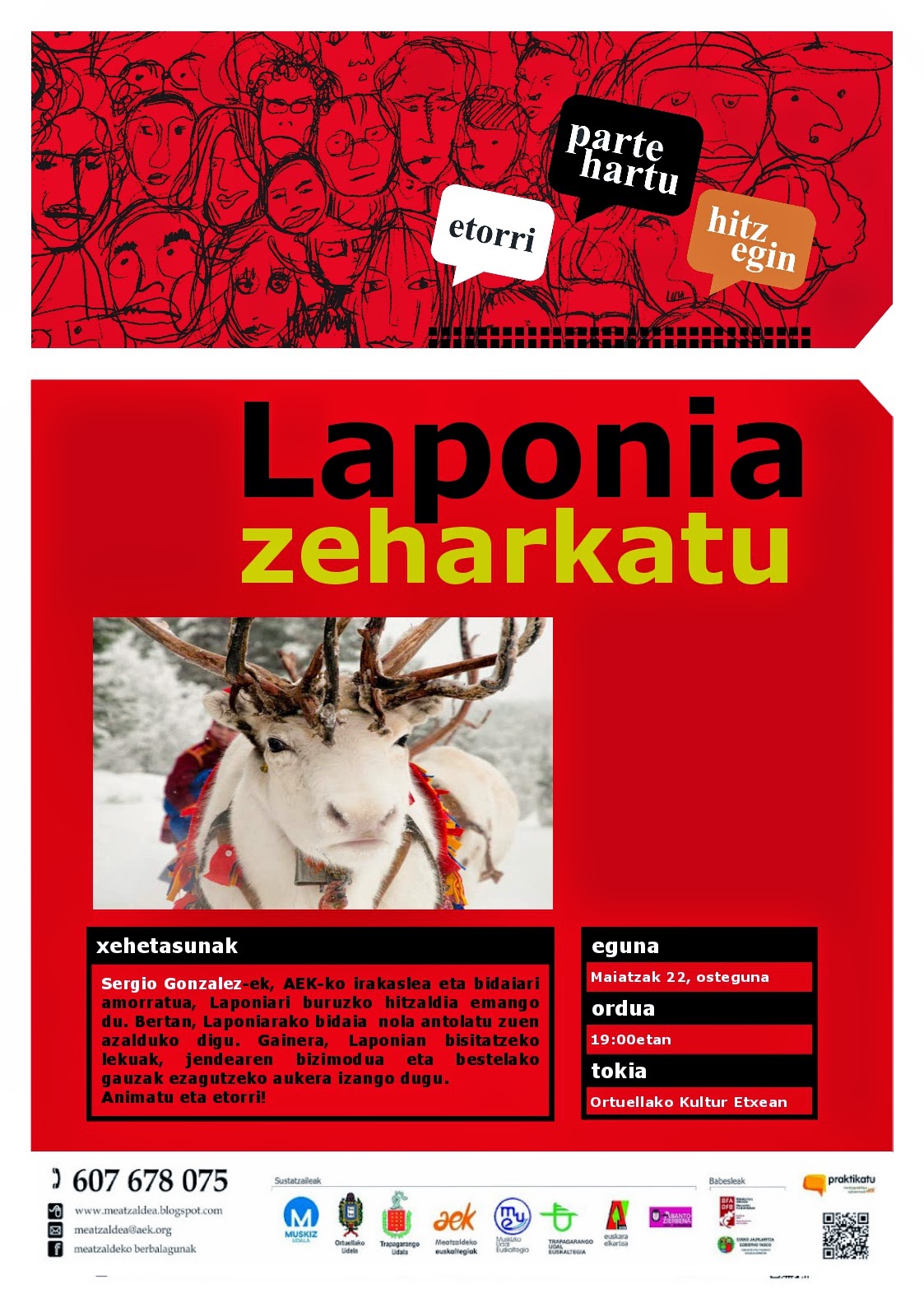 Sergio Gonzalez-ek, AEK-ko irakaslea eta bidaiari amorratua, Laponiari buruzko hitzaldia emango du. Bertan, Laponiarako bidaia nola antolatu zuen azalduko digu. Gainera, Laponian bisitatzeko lekuak, jendearen bizimodua eta bestelako gauzak ezagutzeko aukera izango dugu.