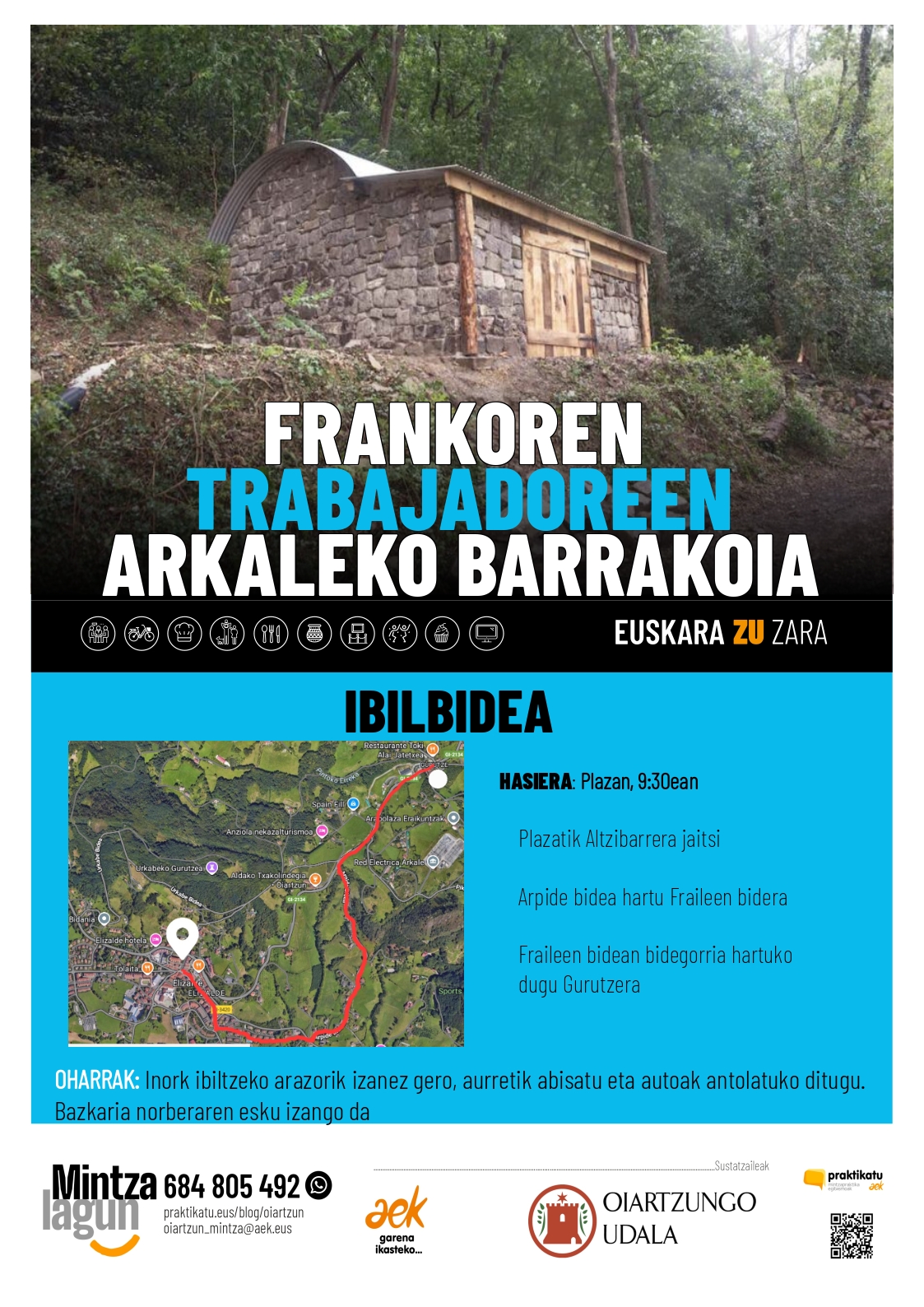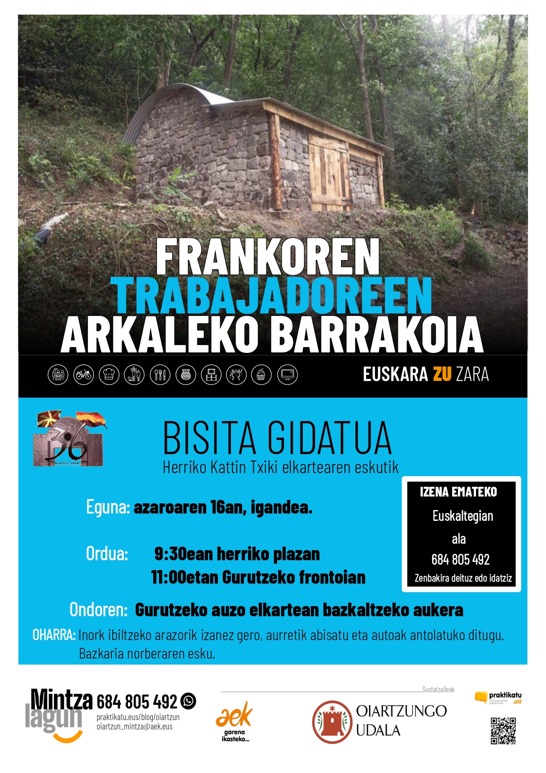 Egitasmoari hasiera eman ondoren, hemen dugu lehen txangoa: herriko Kattin Txiki elkartearen eskutik Gurutze auzoko barrakoia ezagutuko dugu. Bi hitzordu aukeran: Oinez igotzeko asmoa duenarentzat,…