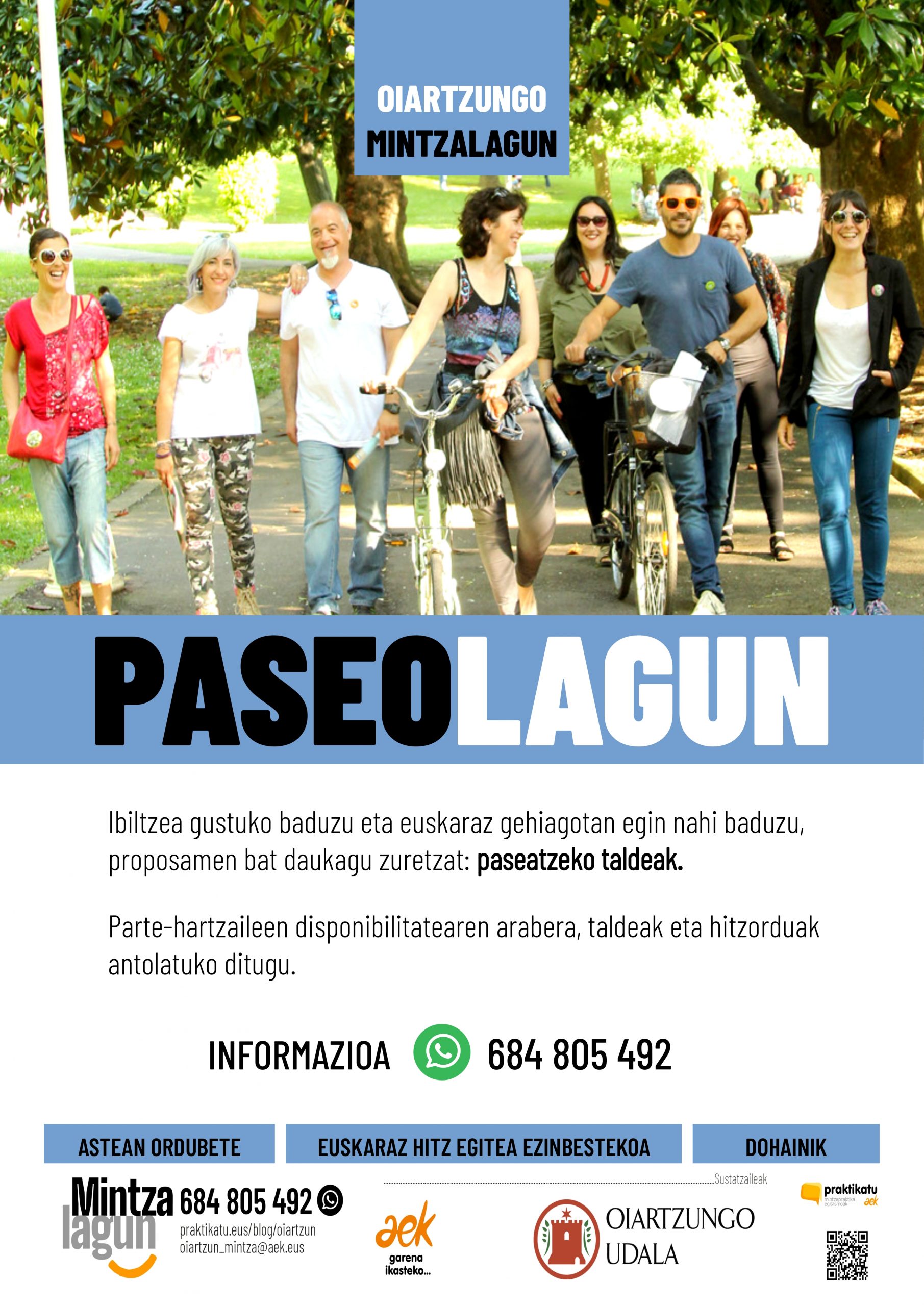 Ibiltzea gustuko baduzu eta euskaraz gehiagotan egin nahi baduzu, proposamen bat dugu zuretzat: paseatzeko taldeak. Parte-hartzaileen disponibilitatearen arabera, taldeak eta hitzorduak antolatuko ditugu. Informazioa eskuratu…