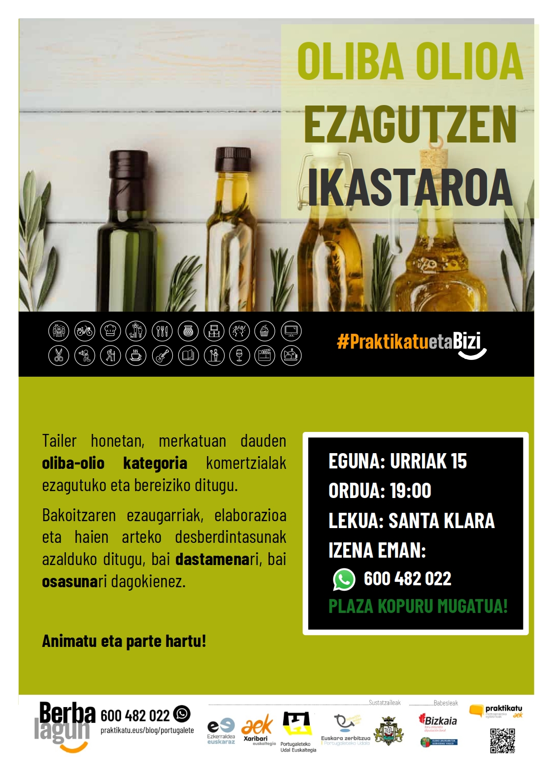 Tailer honetan, merkatuan dauden oliba-olio kategoria komertzialak ezagutuko eta bereiziko ditugu: oliba-olio leuna, oliba-olio bizia, oliba-olioa birjina, oliba-olio birjina estra eta oliba-patsaren olioa. Kategoria bakoitzaren…