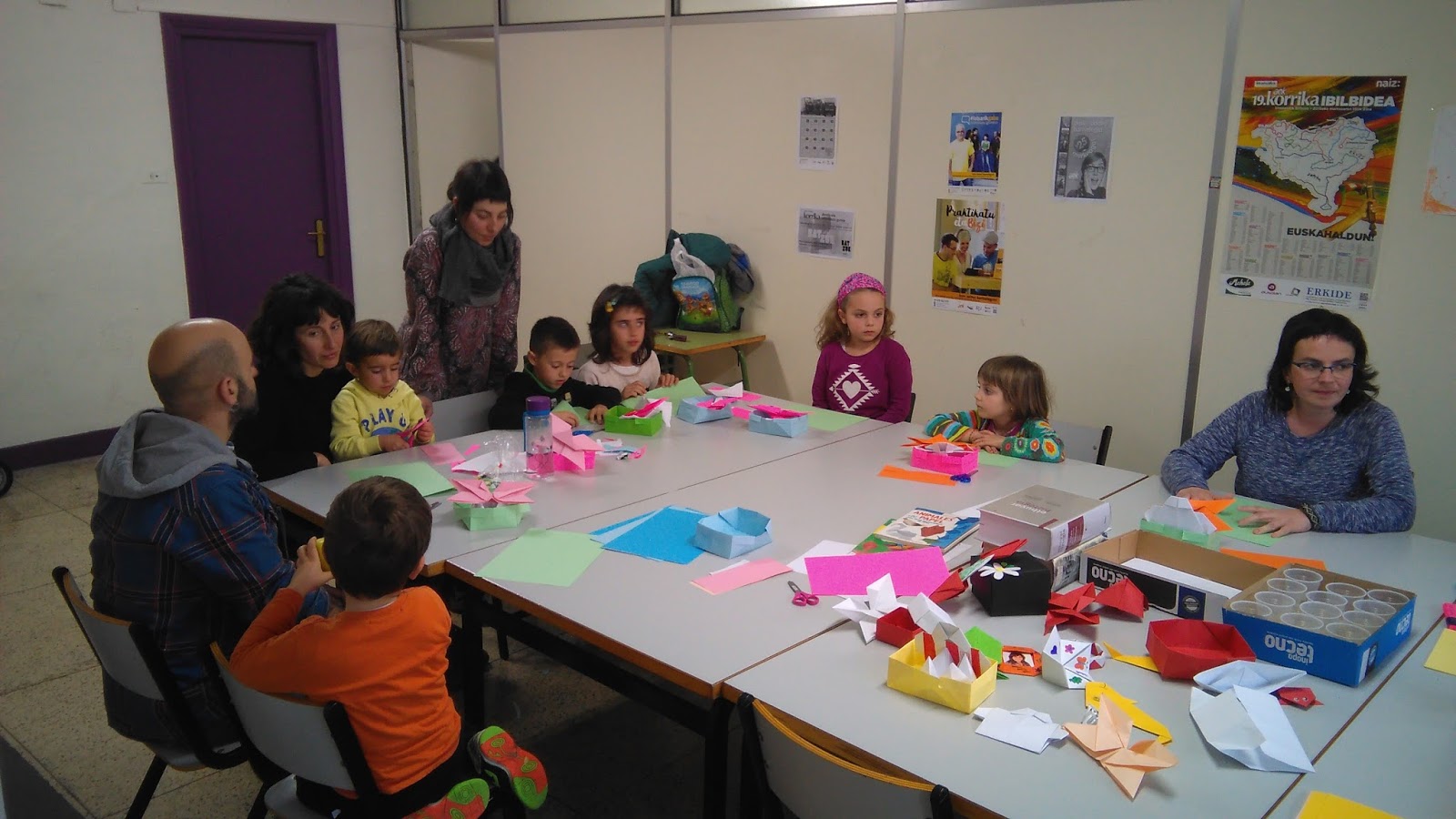 Pasa den ostegunean, martxoak 2, Santurtziko gurasolagunak elkartu ziren papiroflexia egiteko. Edurne izan zuten irakasle, eta bere laguntzari esker umeek eta ez hain umeek hainbat figura egin zituzten: kutxa, tximeleta eta kamiseta (Athleticena, noski), besteak beste. Gustura baino gusturago ibili zirenez, beste saio bat antolatuko dugu.