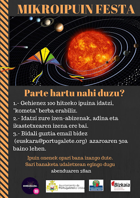 Mikroipuin festa 2018-11-22 Bidalketetan zehar nabigatu Previous Previous post: Euskaraldia Portugaleteko egitarauaNext Next post: Barakaldoko Berbalagunek Xaboia egiteko tailerra egingo dute