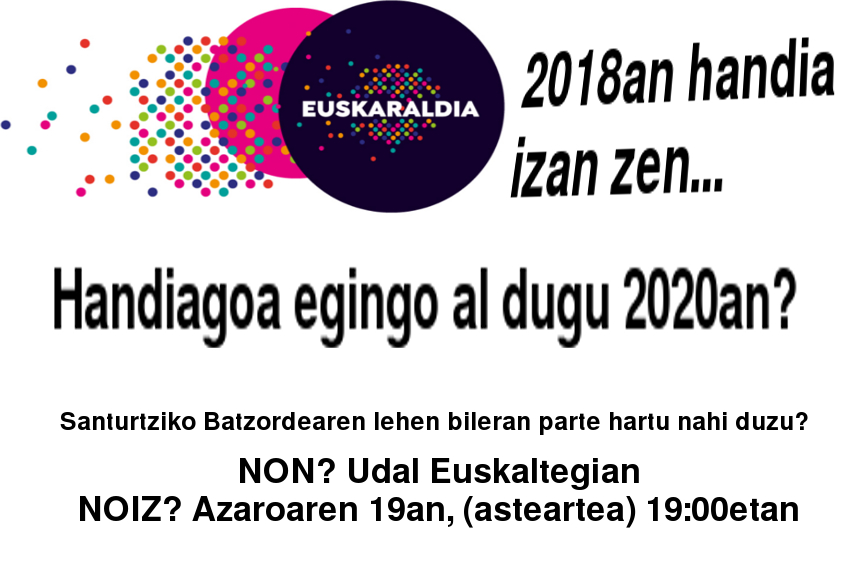Aurreko mezuan abisatu genuen azaroaren 22a agendan gorde beharrekoa zela. Zergatik? Bada, bi hitzordu garrantzitsu izango dugulako…