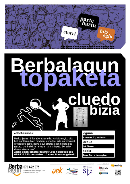 18:30ean Berbalagun topaketa izango dugu. Baina aurtengoa ezberdina izango da… Izan ere, Muñoz jauna hiriko aberatsena da. Hariak mugitu ditu beti nahi izan duen moduan, ondorioei zein autoritateei erreparatu gabe. Baina gaur arratsaldean hilketa bat gertatu da. Pistei jarraituz erruduna topatu beharko duzue. Ala zu zara?