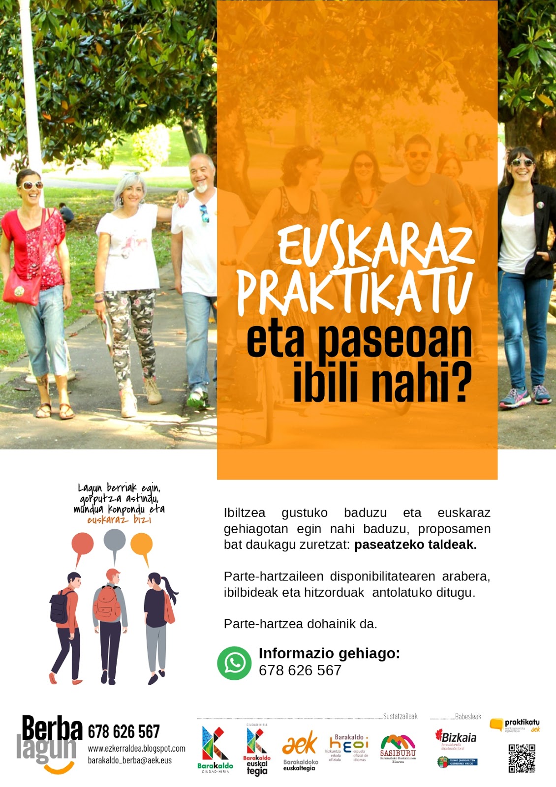 Euskaraz hitz egin, eta, gainera, Barakaldon zehar paseoan ibili nahi duzu? Bada, orain aukera duzu, paseatzeko taldeak antolatzekotan baikabiltza. Anima zaitez!