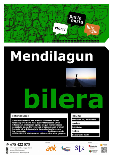 Mendilagun bilera 2017-03-01 Bidalketetan zehar nabigatu Previous Previous post: Inauterietako talde argazki lehiaketaNext Next post: Euritakoak margotzeko tailerra!!