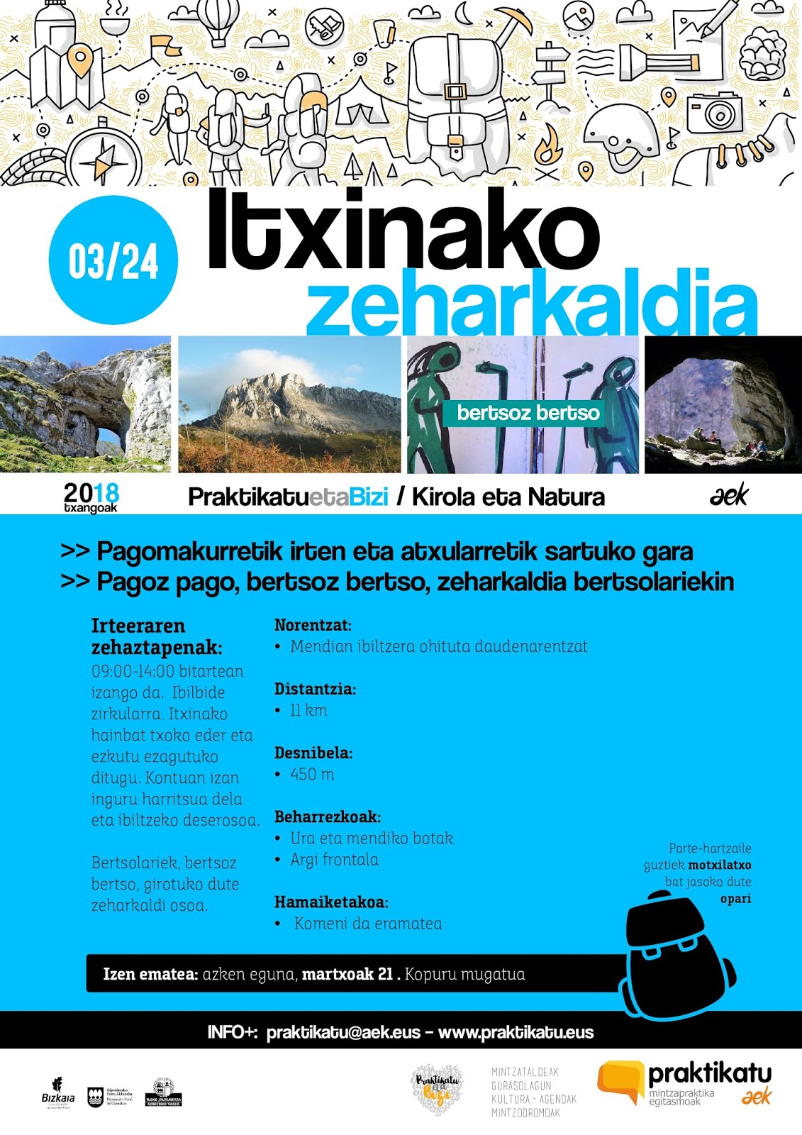 Kirola eta Natura: ITXINA 2018-03-12 Bidalketetan zehar nabigatu Previous Previous post: Ibilaldiaren bideo eta kantaren aurkezpenaNext Next post: Antzerkia: “Ez dok hiru”