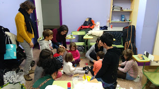 Asteazkenean, martxoak 21, 18 lagun elkartu ginen material arruntak erabiliz (plastikoa, kartoia, papera…), musi-tresnak egiteko. Umeek zein gurasoek primeran pasatu zuten, Marijok emandako tailerrari esker. Gainera, amaieran, tailerra borobiltzeko, abestu genuen, Marijo eta Ana Mari kantulagunek zuzendua.