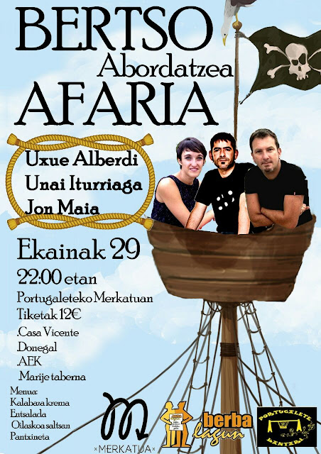 Merkatuko bertso-eskola, Portu Kantari eta Berbalagun taldeen eskutik, ondo afaltzeko, ondo pasatzeko eta EUSKARA PRAKTIKATZEKO une ederra izango da.