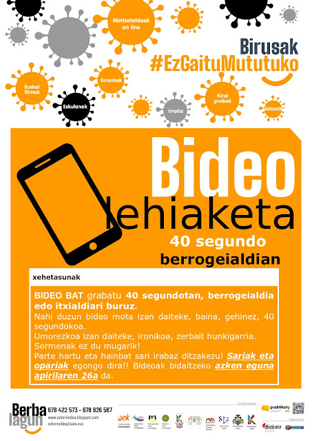 “40 segundoko berrogeialdia” bideo-lehiaketan parte hartzeko epe-muga apirilaren 26ra arte luzatu dugu. Anima zaitez!