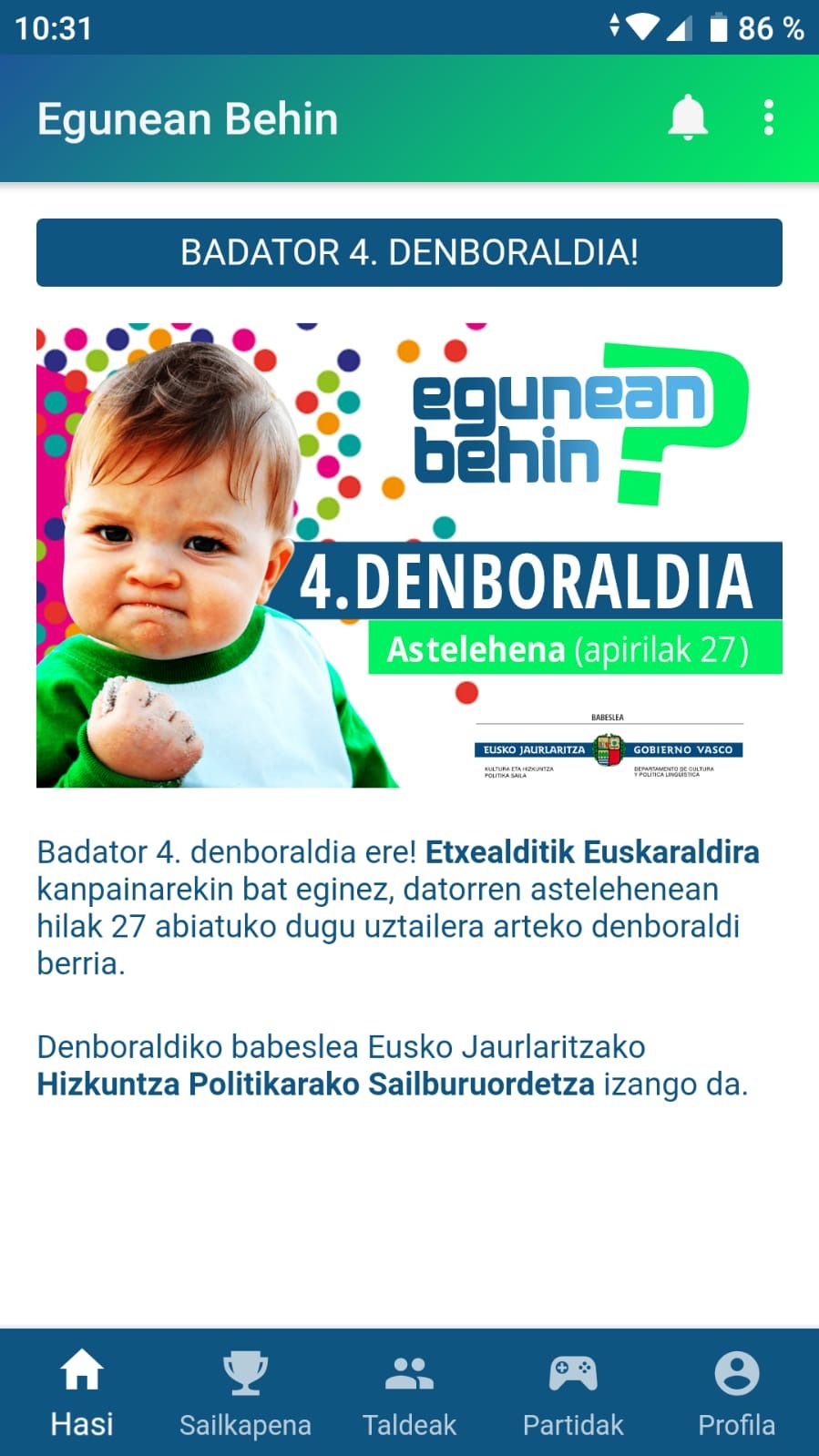 EGUNEAN BEHIN 4. denboraldia 2020-04-27 Bidalketetan zehar nabigatu Previous Previous post: Oraindik ez dakizu nola egin bideodeiak?Next Next post: GOZOGINTZA tutoriala eta lehiaketa