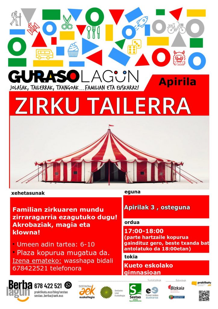 Familian zirkuaren mundu zirraragarria ezagutuko dugu! Akrobaziak, magia eta klowna! Eman azkar izena, plaza kopurua mugatua da-eta!
