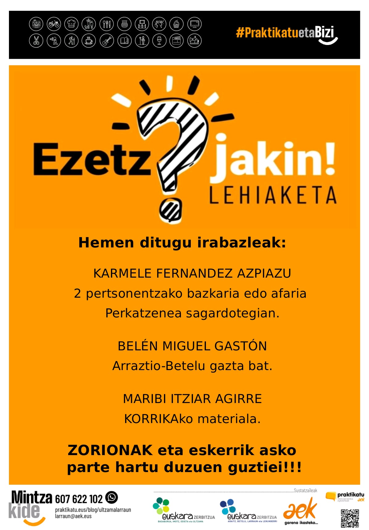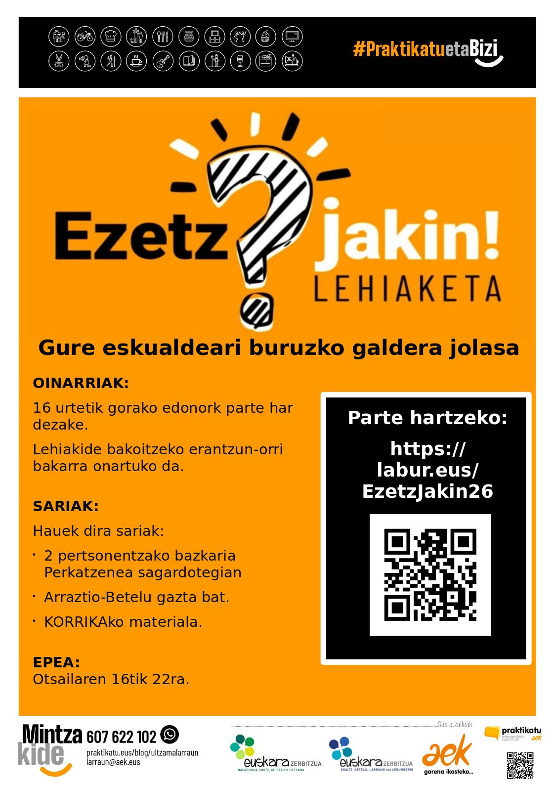📢 Ezetz Jakin Lehiaketa martxan da!!! Animatu eta galderak erantzun 🎁 Sariak eskuratzeko aukera! Zorte on🍀