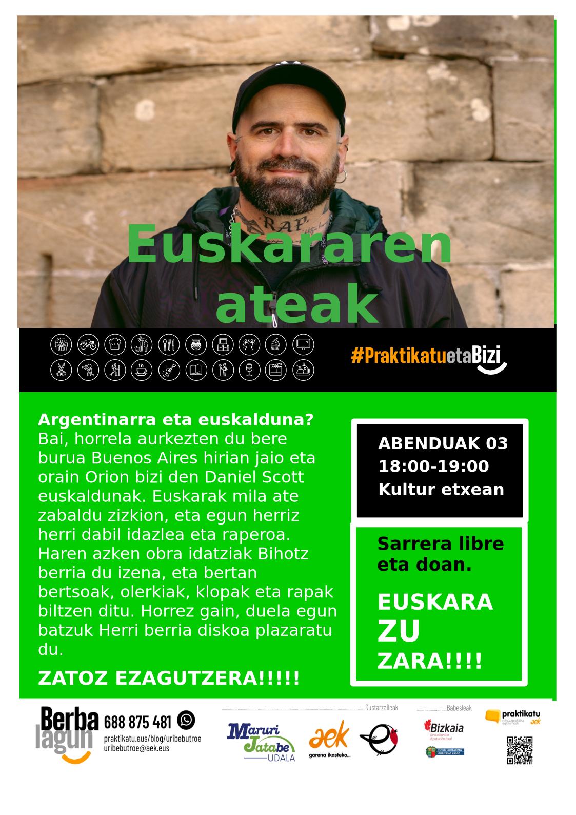 Argentinarra eta euskalduna? Bai, horrela aurkezten du bere burua Buenos Aires hirian jaio eta orain Orion bizi den Daniel Scott euskaldunak. Euskarak mila ate zabaldu…