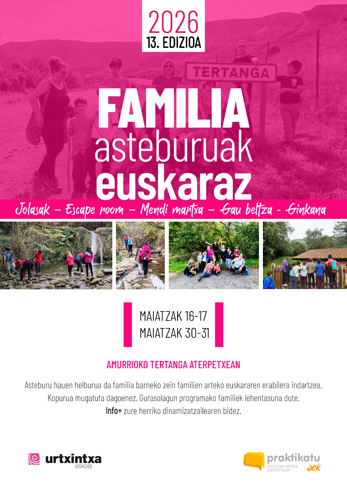 Maiatzeko asteburu pasetan oraindik ere tokia dago. DATAK 🗓️ Maiatzak 16-17 Maiatzak 30-31 LEKUA📍 Amurriko Tertanga Aterpetxean EUSKARA GARA eta IZANGO GARA!!!!